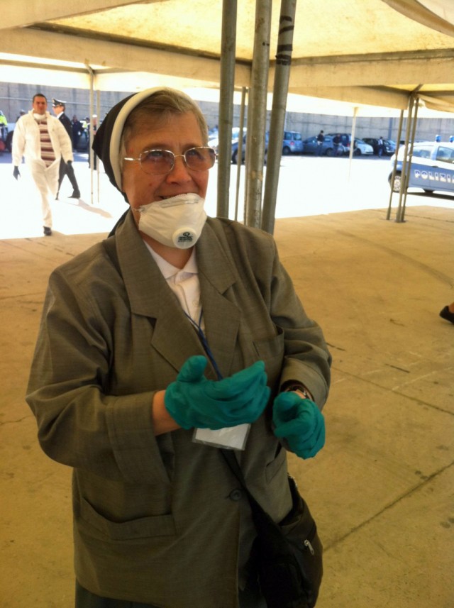 Qualche parola in inglese, in francese, in portoghese. Ma soprattutto un linguaggio fatto di gesti e sorrisi. È l’unico modo che suor Lina ha per comunicare con i profughi. “Alcuni ragazzi africani mi si sono avvicinati e all’orecchio mi hanno detto: «sono cristiano». L’hanno fatto sottovoce, come se avessero paura di essere sentiti dagli altri. Mi si sono riempiti gli occhi di lacrime. Ho risposto: «Prego per voi». E loro, semplicemente: «Amen»”.